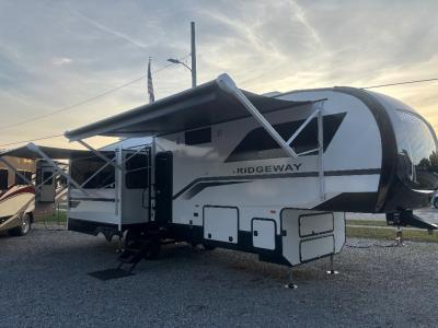 When you choose a Ridgeway fifth wheel by KZ you are choosing a modern design, convenient features, and comfort at every turn! These units have been constructed with some of the most durable materials in the industry, including Tufflex roofing material. The exterior includes a full painted front cap, a fully-finished, heated and sealed basement storage compartment, and a deluxe heated water convenience center to easily monitor your units water levels. There is also 4-point auto electric leveling, a 2" towing receiver hitch, and many more stand-out exterior features. Once inside, you'll enjoy the ceiling crown molding, 5" gold cabinet hardware, deluxe residential-style furniture, and all-wood lumber core screwed cabinets with hardwood doors. The comforts continue on in the bathroom and bedroom with a shower skylight and built-in seat, large linen closets, a luxurious bedspread, and XL under-bed storage for luggage, extra blankets and more!
