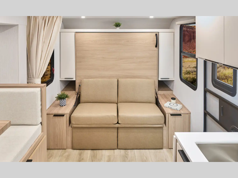Sleeps 3 Slides 1 Length 22 ft 5 in Ext Width 7 ft Ext Height 10 ft 5 in Int Height 6 ft 4 in Interior Color Modern Luxe Exterior Color White Hitch Weight 436 lbs GVWR 5500 lbs Dry Weight 4291 lbs Fresh Water Capacity 31 gals Grey Water Capacity 25 gals Black Water Capacity 25 gals Tire Size ST235/75R15 Furnace BTU 18000 btu Available Beds Murphy Refrigerator Type 12V Refrigerator Size 10 cu ft Convection Cooking Yes Cooktop Burners 2 Shower Size 30" x 36" Number of Awnings 1 Axle Weight 3000 lbs LP Tank Capacity 20 lbs Water Heater Type Tankless AC BTU 13500 btu TV Info LR Smart TV Awning Info 15' Power with LED Lighting Axle Count 2 Number of LP Tanks 2 Shower Type Standard Electrical Service 30 amp Solar Wattage 200 watts Similar Floorplans
